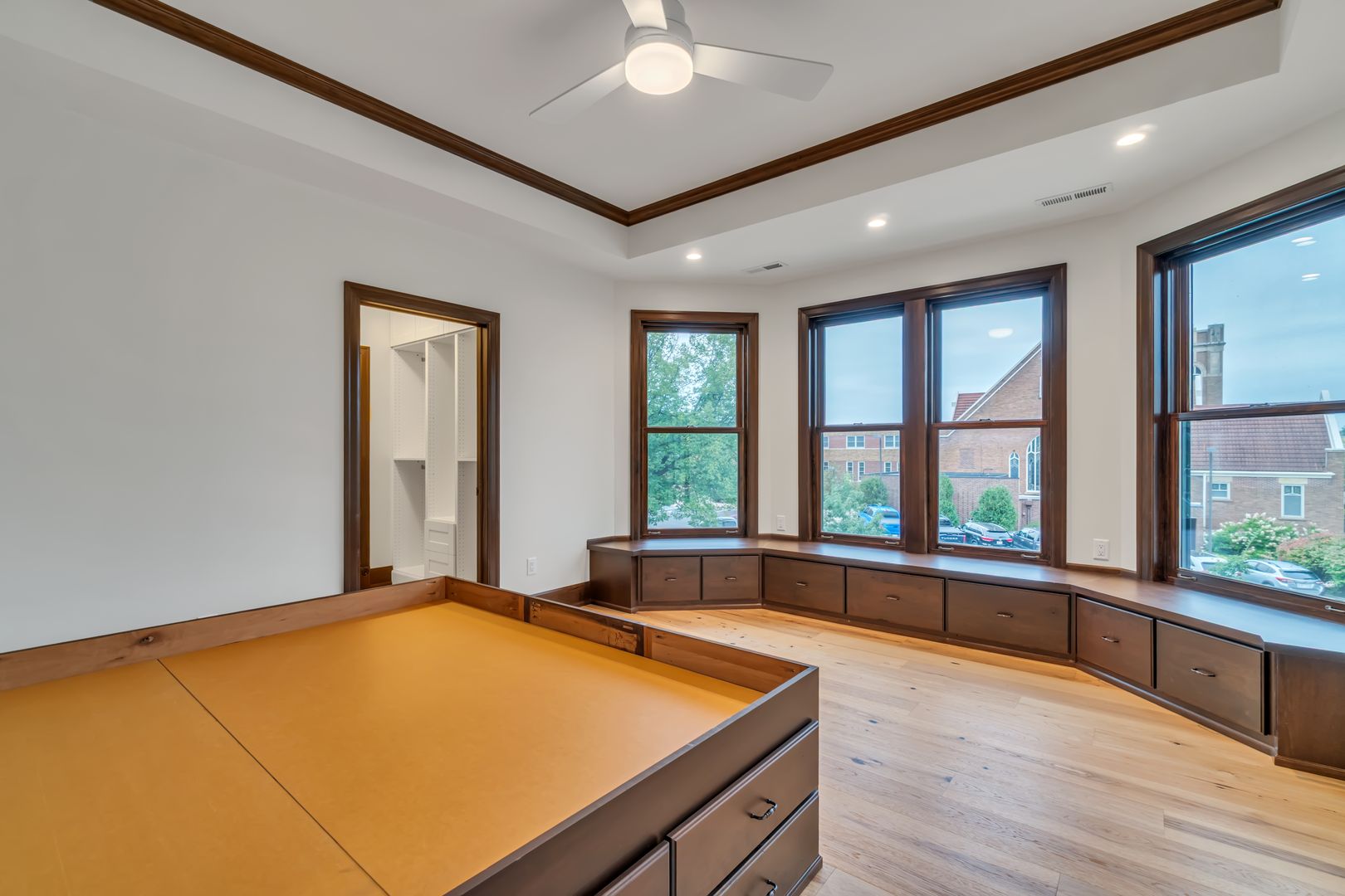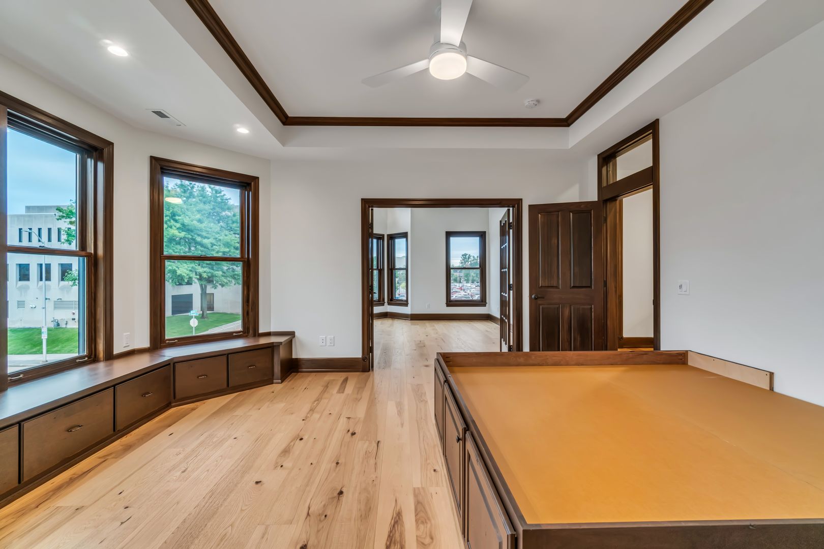 The primary suite is a true retreat, featuring a built-in king bed, cozy reading nook, and a connected bonus room ideal for a home office or library. All bedrooms include generously sized walk-in closets.
